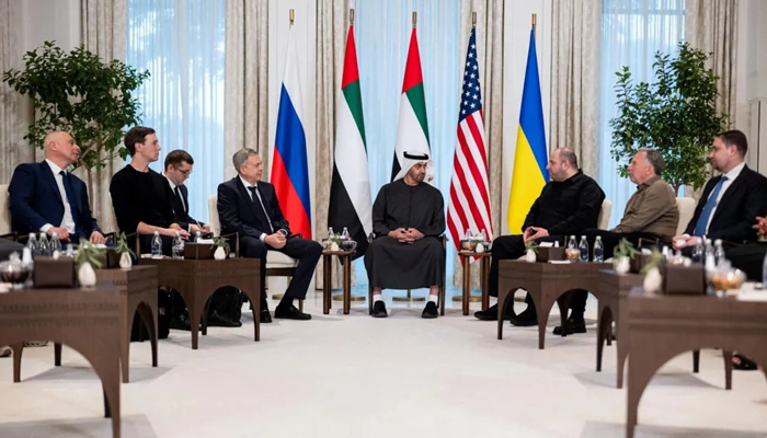 امریکا کی ثالثی میں ابوظبی میں یوکرین روس مذاکرات کاپہلادور ختم ہوگیا۔ غیر ملکی خبر رساں ادارے کے مطابق ابوظبی میں یوکرین روس کے پہلے مذاکرات کے ختم ہوئے دور کی تفصیلات جاری نہیں کی گئی ہیں۔ میڈیا رپورٹس میں بتایا جارہا ہے کہ یوکرین روس مذاکرات کا آخری دور آج پھر ہوگا،مذاکرات کے دوران متحدہ عرب امارات عالمی تنازعات کے حل پر زور دے گا۔ دوسری جانب اماراتی صدر شیخ محمد نے یوکرین کے بحران کے حل کی حمایت کا اعلان کیا ہے۔ واضح رہے کہ روس یوکرین جنگ فروری 2022 سے جاری ہے، عرب امارات کی ثالثی سے روس اور یوکرین کے 4ہزار 641 فوجی قیدی رہا ہو چکے ہیں۔