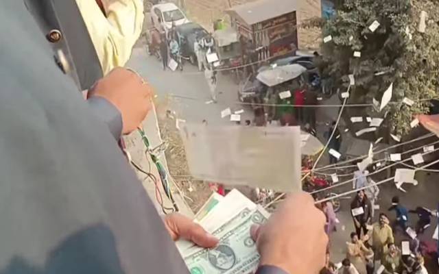 بارات بیگ چک سے ڈسکہ کے نجی میرج ہال پہنچی، زبیر بھٹی ایڈووکیٹ کے بھائی نے بارات کے راستے میں نوٹ نچھاور کیے۔ سیکڑوں گاڑیوں کا قافلہ اور باراتی حیران رہ گئے جبکہ بچے خوش ہوگئے۔ نجی ہال بارات پہنچتے ہی لاکھوں روپے کے بیگز کھولے گئے۔ ڈالرز، یورو، پاؤنڈز اور ہزار ہزار کے نوٹوں کی بارش دیکھتے بچے تو بچے باراتی بھی پیچھے نہ رہے۔ دلہے کے بھائی نے سونے کا ہار پہنایا تو دوستوں نے پانچ لاکھ روپے والے چیک سلامی میں دیے۔ ویڈیو سوشل میڈیا پر وائرل ہوگئی جس کے شادی کے گھر گھر چرچے ہو رہے ہیں۔