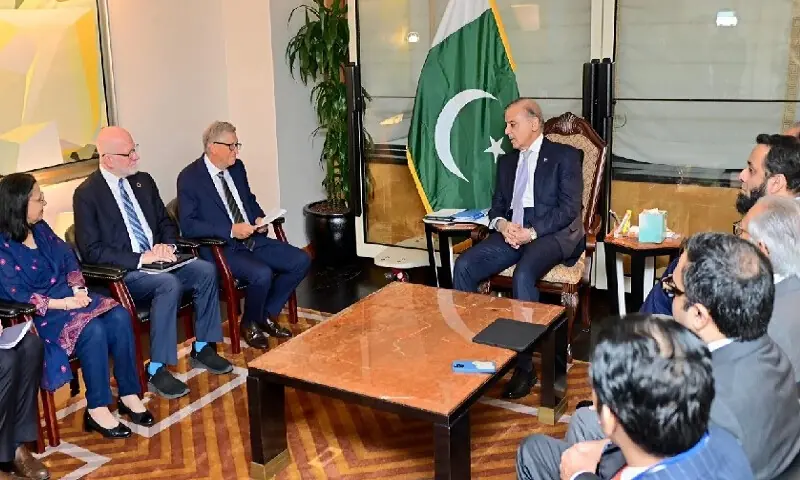 وزیراعظم محمد شہباز شریف سے بل گیٹس فاونڈیشن کے بانی بل گیٹس نے اقوام متحدہ جنرل اسمبلی 80 اجلاس کی سائیڈ لائن پر خوشگوار ماحول میں ملاقات کی۔ وزیراعظم نےبل گیٹس فاؤنڈیشن کی طرف سے 2022 کے سیلاب کے پیش نظر قابل ذکر امدادی کاروائیوں کو یاد کرتے ہوۓ حالیہ 2025 کے سیلاب کے بعد دی جانے والی امداد کو بھی قابل تحسین قرار دیا۔ وزیراعظم نے پاکستان میں پولیو کے تدارک، قوت مدافعت اور غذائی معیار میں اضافہ، اور معاشی شمولیت کے لیے حکومتی اقدامات میں بل گیٹس فاؤنڈیشن کے تعاون کا شکریہ ادا کیا۔ مزید براں وزیراعظم نے پولیو کےمکمل تدارک کے حصول میں بل گیٹس فاؤنڈیشن کے مسلسل تعاون کی اہمیت پر خصوصی زور دیا۔ وزیراعظم نے حکومت کی طرف سے کی جانے والی جامع معاشی ریفارمز، ڈیجیٹلائزیشن میں بل گیٹس فاؤنڈیشن کی عملی اور مثبت تعاون کی خصوصی تعریف کی۔ وزیراعظم محمد شہباز شریف اور بل گیٹس نے پاکستان کی معاشی و معاشرتی ترقی بالخصوص صحت، غذائی معیار و مدافعت میں اضافہ، معاشی شمولیت اور معیشت کی ڈیجیٹلائزیشن جیسے اقدامات میں مشترکہ تعاون کو جاری رکھنے کے عزم کا اعادہ کیا۔