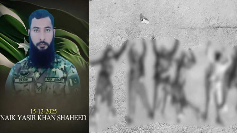 خیبر پختونخوا کے ضلع ڈیرہ اسماعیل خان کے علاقے کلاچی میں سیکیورٹی فورسز نے خفیہ اطلاعات کی بنیاد پر ایک کامیاب آپریشن کے دوران بھارتی پراکسی فتنہ الخوارج سے تعلق رکھنے والے 7 دہشت گردوں کو ہلاک کردیا تاہم شدید فائرنگ کے تبادلے میں پاک فوج کا ایک بہادر جوان نائیک یاسرخان مادرِ وطن پر قربان ہو گیا۔پاک فوج کے شعبہ تعلقات عامہ (آئی ایس پی آر) کے مطابق دہشت گردوں کی موجودگی کی مصدقہ اطلاع پر سیکیورٹی فورسز نے ڈیرہ اسماعیل خان کے علاقے کلاچی میں انٹیلی جنس بیسڈ آپریشن کیا۔ کارروائی کے دوران فورسز نے دہشت گردوں کے ٹھکانے کو مؤثر انداز میں نشانہ بنایا، جس کے نتیجے میں شدید فائرنگ کے تبادلے کے بعد 7 بھارتی حمایت یافتہ دہشتگرد مارے گئے۔آئی ایس پی آر کے مطابق دہشت گردوں سے فائرنگ کے دوران پاک فوج کے 34 سالہ نائیک یاسر خان جن کا تعلق ضلع مردان سے تھا. دشمن کا جوانمردی سے مقابلہ کرتے ہوئے شہادت کے عظیم رتبے پر فائز ہوگئے۔ شہید نے آخری دم تک فرض کی ادائیگی کرتے ہوئے دہشت گردوں کے خلاف بہادری اور پیشہ ورانہ مہارت کا مظاہرہ کیا۔آئی ایس پی آر کا کہنا ہے کہ کارروائی کے بعد ہلاک دہشت گردوں کے قبضے سے بھاری مقدار میں اسلحہ اور گولہ بارود برآمد کیا گیا، جو وہ علاقے میں سیکیورٹی فورسز اور معصوم شہریوں کے خلاف متعدد دہشت گرد سرگرمیوں میں استعمال کر چکے تھے. علاقے میں کسی بھی ممکنہ دہشت گرد کی موجودگی کے خاتمے کے لیے سینیٹائزیشن آپریشن جاری ہے۔ترجمان پاک فوج کی جانب سے بیان میں اس عزم کا اعادہ کیا گیا کہ قومی ایکشن پلان کے تحت وفاقی ایپکس کمیٹی کی منظور شدہ حکمتِ عملی “عزمِ استحکام” کے تحت سیکیورٹی فورسز اور قانون نافذ کرنے والے ادارے ملک سے غیر ملکی سرپرستی میں ہونے والی دہشت گردی کے مکمل خاتمے تک اپنی کارروائیاں پوری قوت سے جاری رکھیں گے۔ترجمان کا مزید کہنا ہے کہ قوم شہداء کی قربانیوں کو سلام پیش کرتی ہے اور دہشت گردی کے خلاف جنگ میں پاک فوج اور قانون نافذ کرنے والے اداروں کی قربانیاں ملکی سلامتی کی ضمانت ہیں۔ یاد رہے کہ گزشتہ روز بھی سیکیورٹی فورسز نے خیبرپختونخوا میں خفیہ اطلاعات پر 2 الگ الگ کارروائیاں کرتے ہوئے بھارتی حمایت یافتہ فتنہ الخوارج کے 13 دہشت گردوں کو ہلاک کیا تھا۔ضلع مہمند میں انٹیلی جنس بیسڈ آپریشن کیا گیا، جہاں سیکیورٹی فورسز نے خوارج کے ٹھکانے کو مؤثر انداز میں نشانہ بنایا۔ کارروائی کے دوران شدید فائرنگ کے تبادلے کے بعد 7 خوارج کو جہنم واصل کیا گیا تھا جب کہ ایک اور انٹیلی جنس بیسڈ آپریشن ضلع بنوں میں کیا گیا، جہاں سیکیورٹی فورسز نے کامیاب کارروائی کرتے ہوئے مزید 6 خوارج کو ہلاک کیا تھا۔